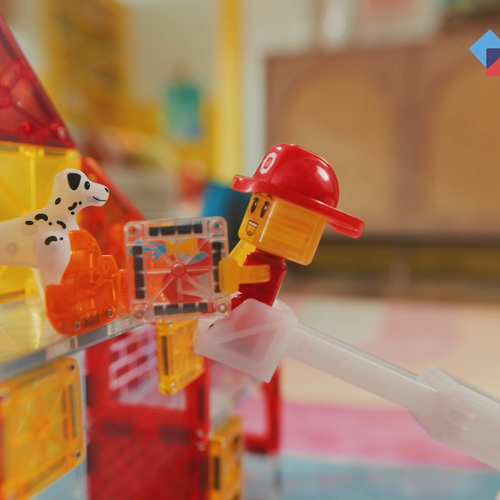 MAGNA-TILES Fire Station 50-Piece Magnetic Construction Set, The Original Magnetic Building Brand